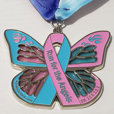 - 3.5" medal featuring a beautiful blue and pink sun-catcher butterfly with the miscarriage awareness ribbon at the center