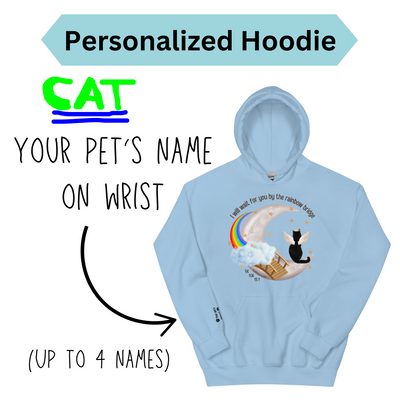 Remember pets at the Rainbow Bridge with this personalized hoodie. Up to 4 pet's names will be embroidered on the right wrist so that you can carry them with you.